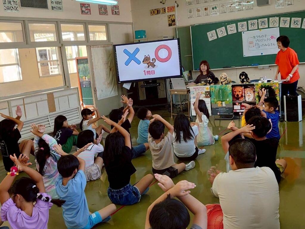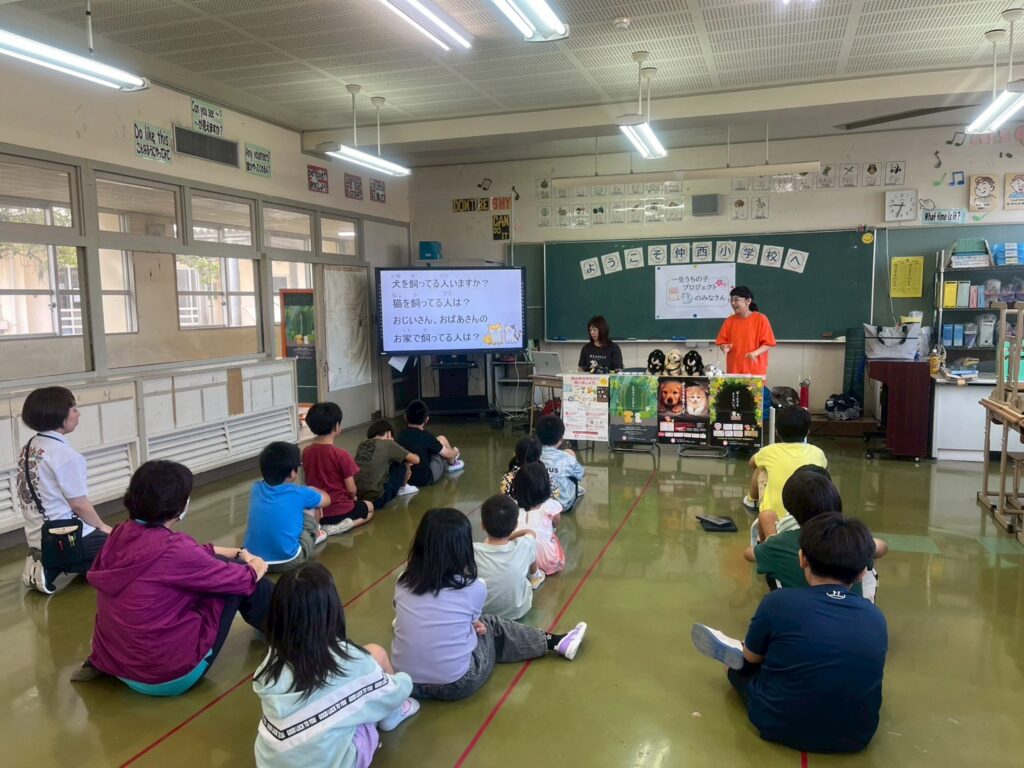 10月22日 浦添市仲西小学校 出前授業2025年10月23日小学校出前授業,活動報告 いつも温かいご支援ご協力をいただきありがとうございます🐱🐶🙏10月22日(水)は、浦添市仲西小学校で一生うちの子プロジェクト 小学校出前授業でした😊👍特別支援学級1〜6年80名の生徒さんが参加してくれました😊🍀「どこでペットを飼いますか?」の質問に「動物愛護団体」と答えてくれた生徒さんがいました!👏教室も可愛い飾り付けを出前授業の為にたくさんしてくださっていました😊💓 2025年10月23日小学校出前授業,活動報告Posted by tomimuraasako
