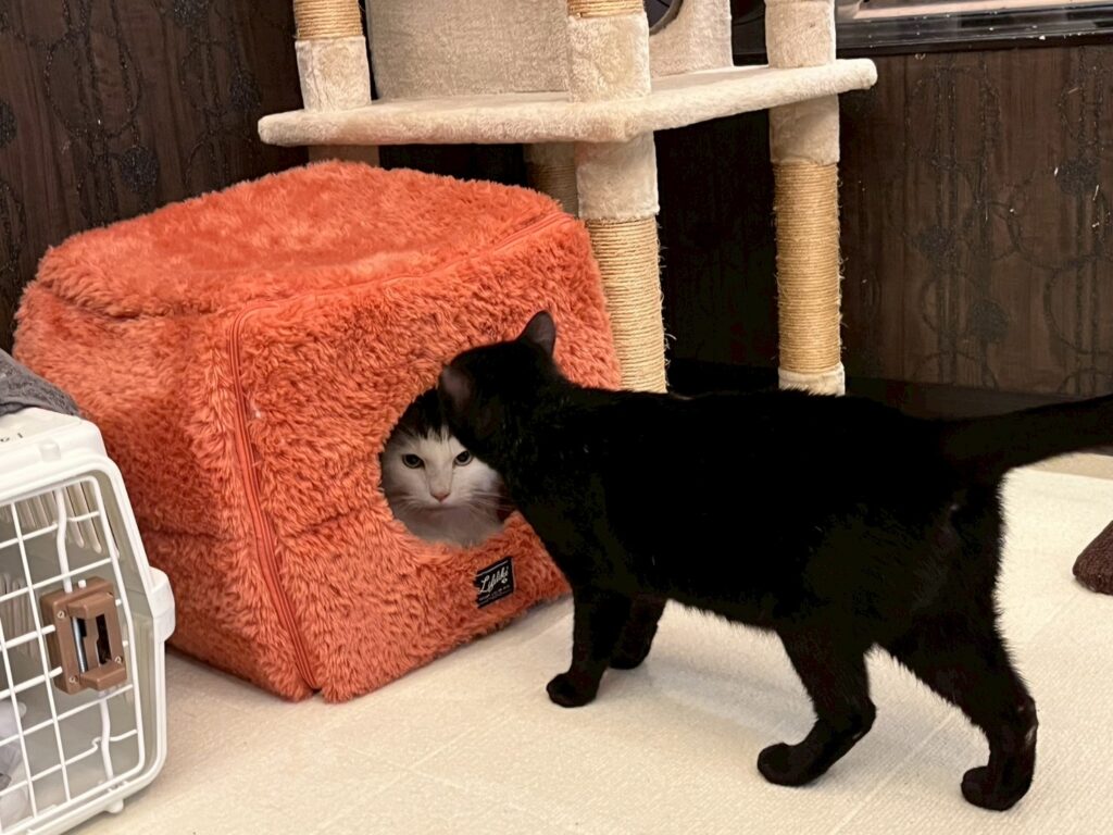 猫部屋に、譲渡希望でいらっしゃった方がハチを気に入ってくれました😍👏